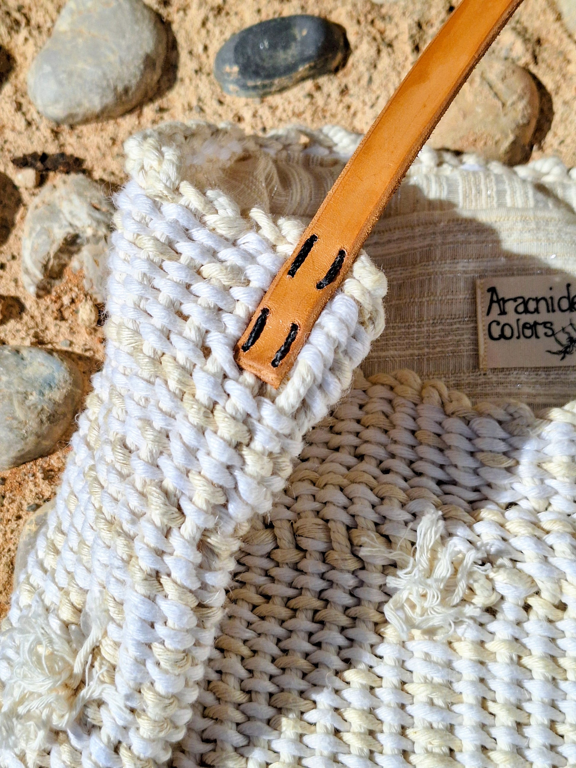 This bag is more than just an exercise of the loom; it is a fragment of my own story. On the outside, the noble strength of organic cotton cords and natural linen connects us to the earth. Inside, a surprise awaits: an ivory lining that shimmers with silver lurex threads, like moonlight reflecting on the water. It is a piece created from emotion, designed to accompany you through the rhythm of your daily life.
