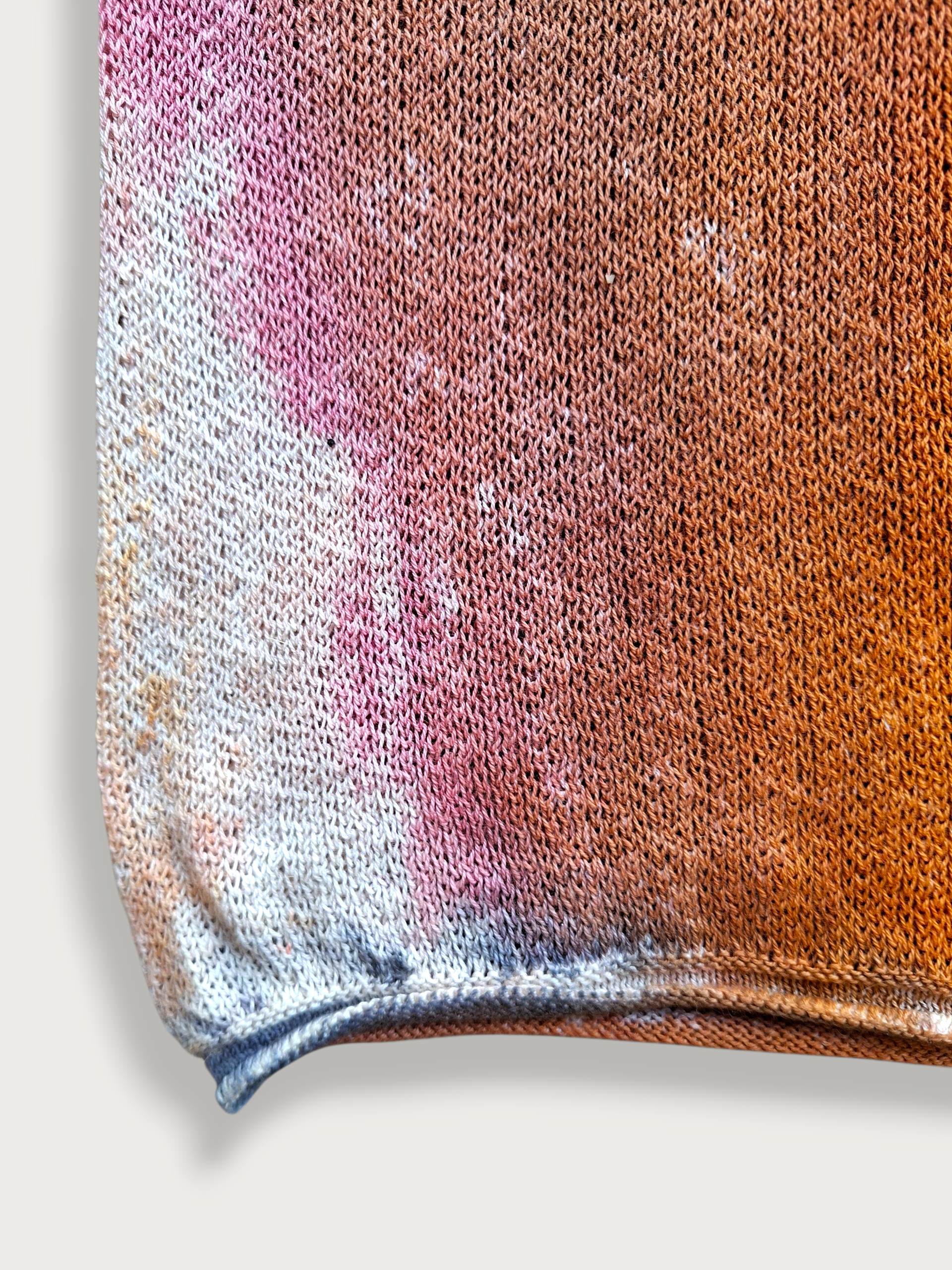 The Uma Pants are made from fine-thread organic cotton, hand-painted with a brush in our studio. Their warm hues of orange, copper and pink evoke the gentle light of a summer sunset.